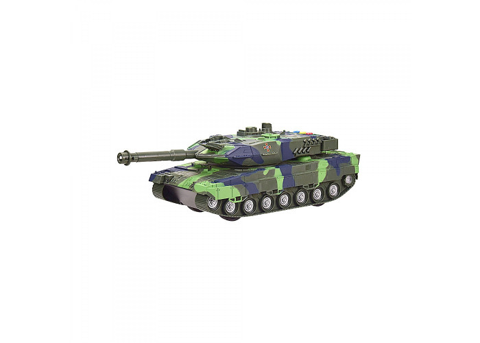 Інерційний танк у сучасному, реалістичному та деталізованому дизайні. Оснащений звуковими (звуки руху та пострілів, фрази англійською) та яскравими світловими ефектами. Башта повертає на 180 градусів із характерним "тріском". Дуло може підійматися та опускатися. Розмір – 38 х 12,5 х 12 см.