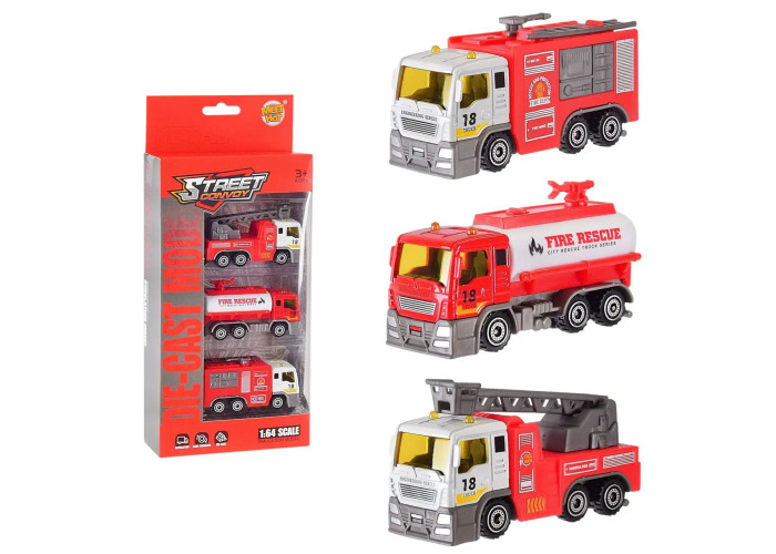 Набір металопластикових машинок із серії "Пожежна служба". Машинки добре деталізовані, виконані у масштабі 1:64. Довга 1 машинка - 7 см, у комплекті 3 машинки. Виконано з якісних та міцних матеріалів. Для дітей віком від 3-х років.