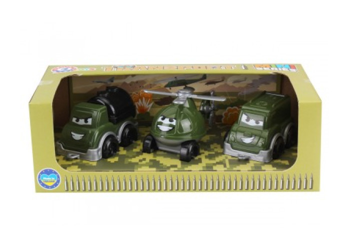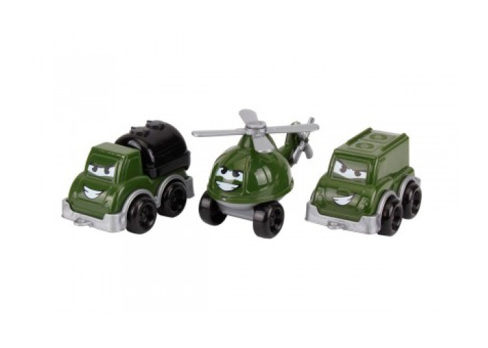 У наборі маленькі бензовоз, гвинтокрил і мікроавтобус. З іграшками цікаво гратися у пісочниці та вдома. Можна відвойовувати території, захищати будівлі та нападати на ворога. Такі ігри розвивають у дітей навики комунікації, вчать вести переговори та будувати стратегії.
