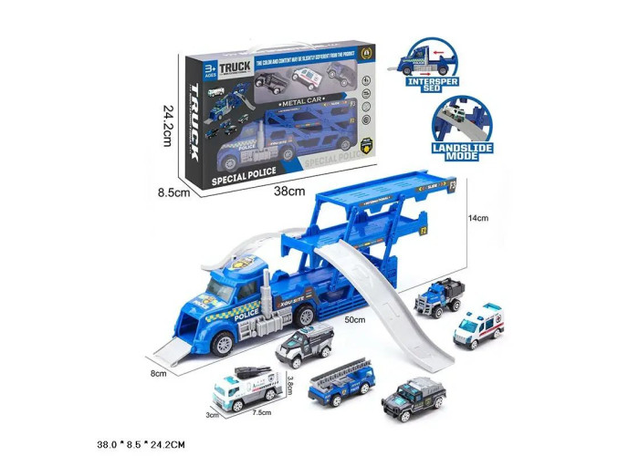 Машинок ніколи не буває багато. Але іноді за ними не так вже й просто встежити, а тим більше знайти кожній своє місце. Щоб надалі не стикатися з такими проблемами - купуйте “правильний” транспорт, такий як Трейлер-паркінг. Ігровий набір складається з 6 маленьких металевих гоночних машинок і великого 3-рівневого автовоза, для їх транспортування. Але цей трейлер не такий простий, яким може здатися з першого погляду! За допомогою нескладних маніпуляцій причіп вантажівки розкладається, трансформується і до нього кріпляться 2 спуски для заїзду/з'їзду машинок. Додатково з'являється спеціальний майданчик із пусковим механізмом. Достатньо поставити на нього машинку і натиснути на важіль - авто на швидкості промчить крізь автовоз і вискочить з-під капота. З таким ігровим набором малюк може влаштувати захоплююче змагання, дати волю фантазії, цікаво провести дозвілля та зібратися з друзями, щоб похвалитися новим крутим придбанням. Тепер іграшок вистачить на всіх! Трейлер автовоза стане оригінальним сюрпризом, який підкорить серце кожної дитини
