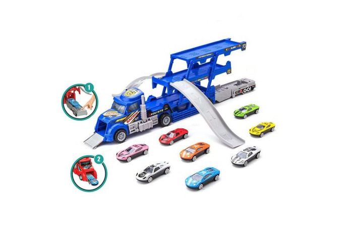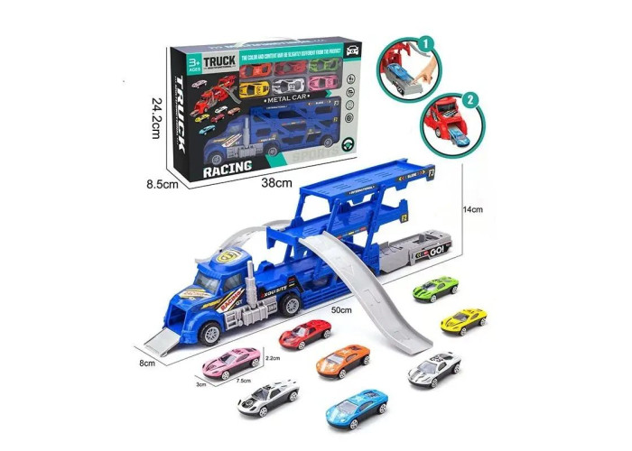 Машинок ніколи не буває багато. Але іноді за ними не так вже й просто встежити, а тим більше знайти кожній своє місце. Щоб надалі не стикатися з такими проблемами - купуйте “правильний” транспорт, такий як Трейлер-паркінг. Ігровий набір складається з 6 маленьких металевих гоночних машинок і великого 3-рівневого автовоза, для їх транспортування. Але цей трейлер не такий простий, яким може здатися з першого погляду! За допомогою нескладних маніпуляцій причіп вантажівки розкладається, трансформується і до нього кріпляться 2 спуски для заїзду/з'їзду машинок. Додатково з'являється спеціальний майданчик із пусковим механізмом. Достатньо поставити на нього машинку і натиснути на важіль - авто на швидкості промчить крізь автовоз і вискочить з-під капота. З таким ігровим набором малюк може влаштувати захоплююче змагання, дати волю фантазії, цікаво провести дозвілля та зібратися з друзями, щоб похвалитися новим крутим придбанням. Тепер іграшок вистачить на всіх! Трейлер автовоза стане оригінальним сюрпризом, який підкорить серце кожної дитини