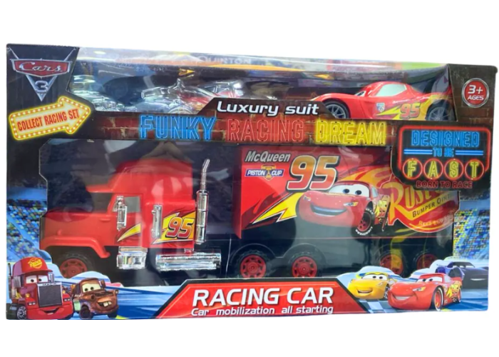 • Набір містить: 4 барвисті гоночні машинки + 1 вантажівку Блискавки МакКвіна