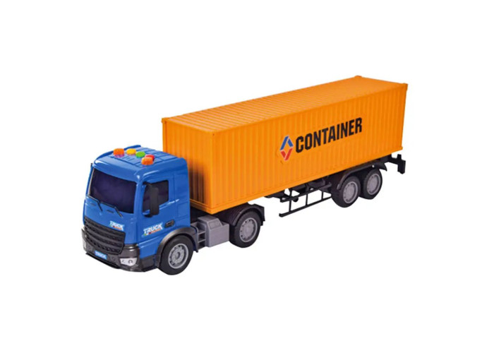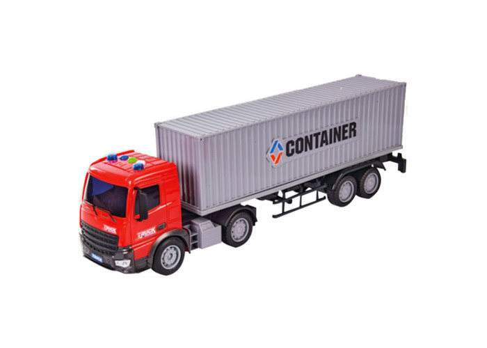Великі яскраві автомобілі завжди приваблювали малюків і кожен хлопчик хотів мати у своєму гаражі велику вантажівку з причепом, який можна було б завантажити корисним вантажем. Завдяки довгому причепу з контейнером у цю вантажівку можна завантажити що завгодно! Але на цьому особливості машинки не закінчуються. Машинка відтворює звукові сигнали вантажівки та може вмикати світлові сигнали на даху вантажівки.