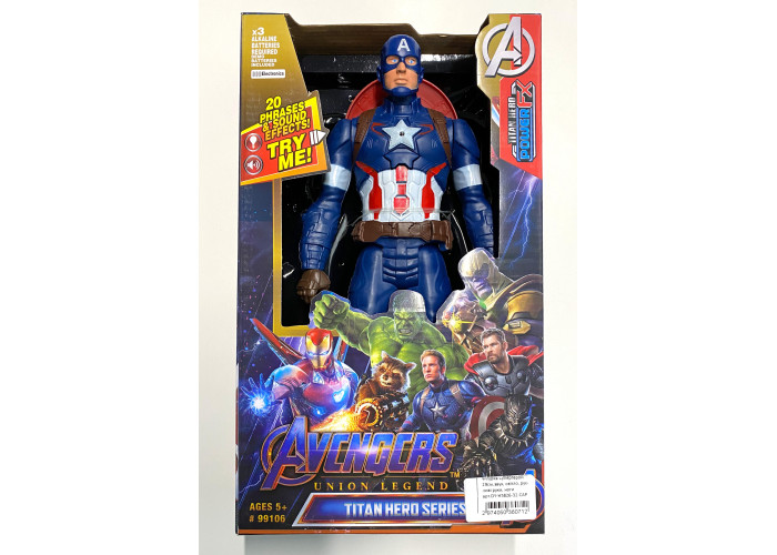 Фігурка супергероя із серії "Avenqers" виконана з пластика, має висоту 29 см., підсвічування, звукові ефекти, рухливі руки і ноги, доступні шість різних героїв на вибір.