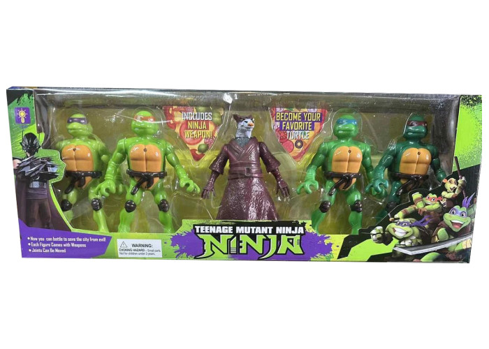 Цей ігровий набір порадує любителів черепашок ніндзя! У наборі ви знайдете самих черепашок (Рафаель, Леонардо, Мікеланджело, Донателло), а також їхнього вчителя майстра Сплінтер.