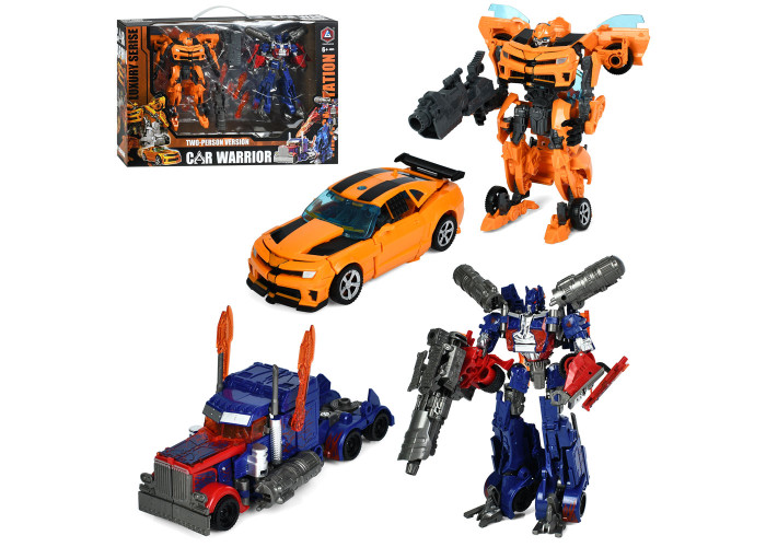 У цьому наборі представлені два трансформери – Оптімус Прайм і Бамблбі. Кожен робот легко трансформується вручну з бойового робота у транспортний засіб і назад. Висота робота становить 20см, а всі елементи виготовлені з міцного та легкого пластику, безпечного для дітей від 3 років.Ці технологічні та динамічні іграшки з футуристичним дизайном і численними рухомими частинами стануть чудовим подарунком для будь-якого хлопчика. До комплекту також входить зброя для роботів, що додає ще більше інтерактивності в гру.
