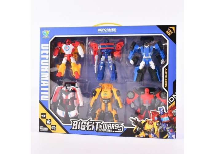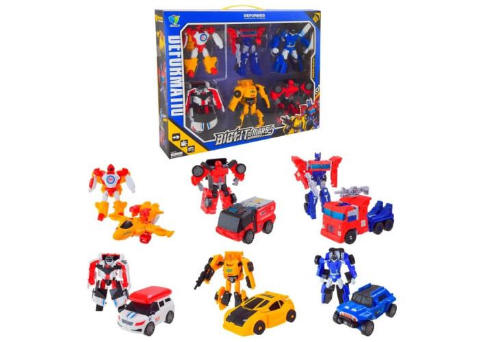 - У комплекті є 6 роботів яких можна трансформувати в машинки.