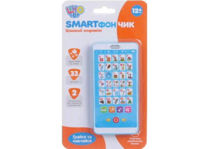 Малюк вивчить не тільки букви,але і безліч предметів, послухає віршики,а потім пограє у гру веселий пошук. Телефон озвучений професійним диктором українською мовою. Велику схожість з цим смартфоном робить цю інтерактивну іграшку однією з найулюбленіших.