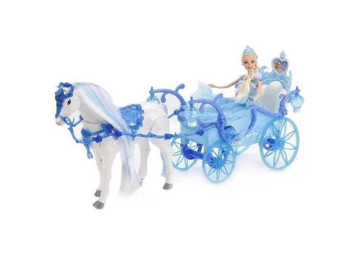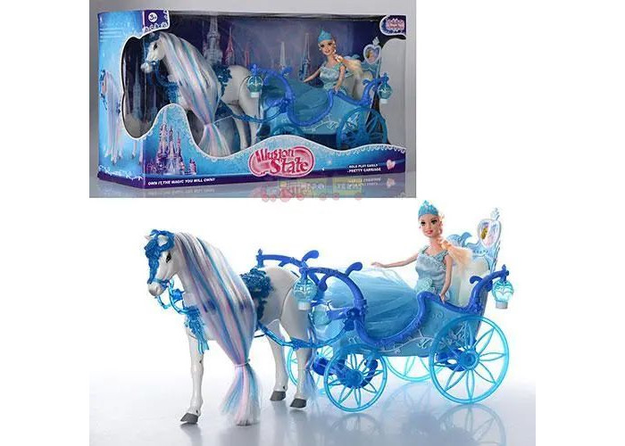 Ігровий набір лялька з каретою та конем, який може ходити. Лялька в нарядній сукні, її можна витягнути з карети або посадити в карету. У карети обертаються колеса. Крім цього, вона має світлові ефекти. Після включення спалахують світильники, розташовані з обох боків екіпажу. Конячка рухає ногами, має реалістичні звукові ефекти цокіт копит, кінське іржання. Якщо її потягнути, вона пощастить за собою карету.