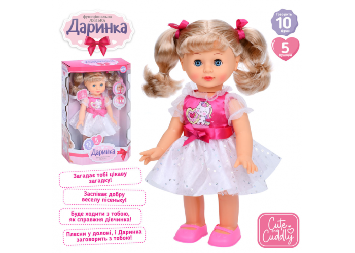 - Лялька Даринка вміє говорити і співати українською мовою. Для початку розмови Ваша дитина повинна плеснути в долоні.