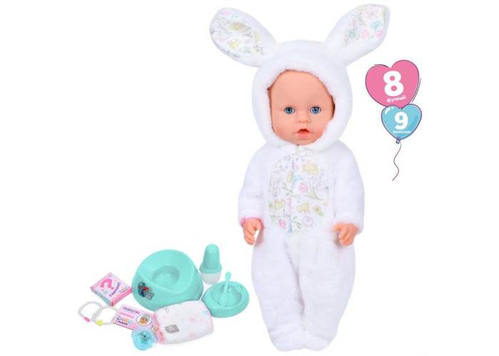 Пупс вміє закривати очі, плакати, ходити на горщик та пити з пляшечки. Для того, щоб активувати функціонал, потрібно спочатку напоїти пупса з пляшечки. До комплекту входять додаткові аксесуари, які зроблять тематичну гру більш реалістичною та дозволять доглядати за пупсом, як за справжньою дитиною!