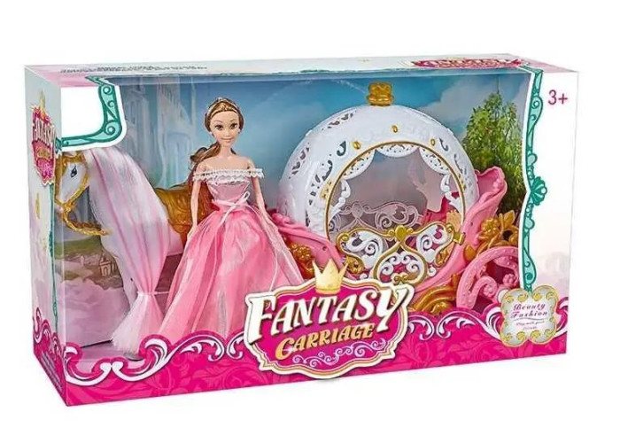 Ігровий набір лялька з каретою та конем, який може ходити. Лялька в нарядній сукні, її можна витягнути з карети або посадити в карету. У карети обертаються колеса. Крім цього, вона має світлові ефекти. Після включення спалахують світильники, розташовані з обох боків екіпажу. Конячка рухає ногами, має реалістичні звукові ефекти цокіт копит, кінське іржання. Якщо її потягнути, вона пощастить за собою карету.