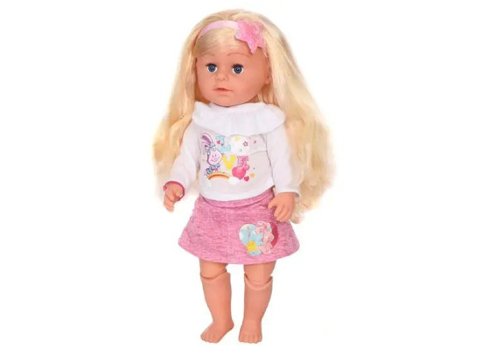 Лялька Малятко з довгим волоссям та аксесуарами (гребінець, шпильки), що дозволяє Вашій дитині з ніжністю дбає про зачіску маленької принцеси, коліна у ляльки шарнірні, тому її з легкістю можна сідати в стільчик або на горщик, писає!