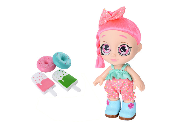 Абсолютно нові і милі лялечки з великими 3D очима вже стали хітом сезону, завдяки унікальної зовнішності і хитній голові - болванчику Ляльки Kaibibi Baby з колекції Funny Doll - представлені в 2-х видах, кожний з яких відрізняється дизайном лялечки і комплектацією до неї. Модель виконана у формі 6-ти річної дівчинки, яка володіє великою головою, масивними ручками і ніжками, а також невеликим тулубом. У неї деталізовані ручки і пальчики, які дуже приємно чіпати за рахунок високої опрацювання. Головна особливість моделі - великі 3D очі, їх хочеться розглядати і насолоджуватися глибинної красою. У комплекті добра лялечка з рожевими очима і ефектними рожевим волоссям. Її повсякденний одяг - нагадуватиме літню теплу пору в будь який сезон, а на ніжках черевички. В комплект входить морозиво на паличці 2 шт і пончики 2 шт.