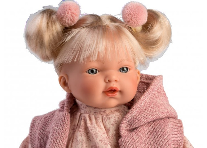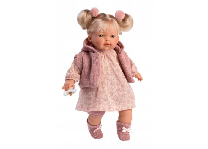 Оригінальна лялька Aitana, від відомого іспанського бренду Llorens. Інтерактивна лялька, що плаче, Aitana - втілення мрії кожної маленької дівчинки. Детальна промальовка пальчиків, красиві очі, рум'яні щічки та ніжна посмішка надають лялечці незвичайну реалістичність. Блискуче волосся прошите по всьому периметру голови, тому дитина зможе легко розчісувати свою маленьку подружку і робити їй красиві зачіски, Голова, ручки та ніжки виготовлені з приємного на дотик вінілу, а м'який животик - із щільного текстилю тілесного кольору. У комплекті з лялечкою є функціональна пустушка з тримачем, при вийманні якої вона плаче і каже "мама", "тато". Також велику увагу виробник приділив одягу, зробивши його із сертифікованого текстилю. При необхідності вбрання можна легко прати.