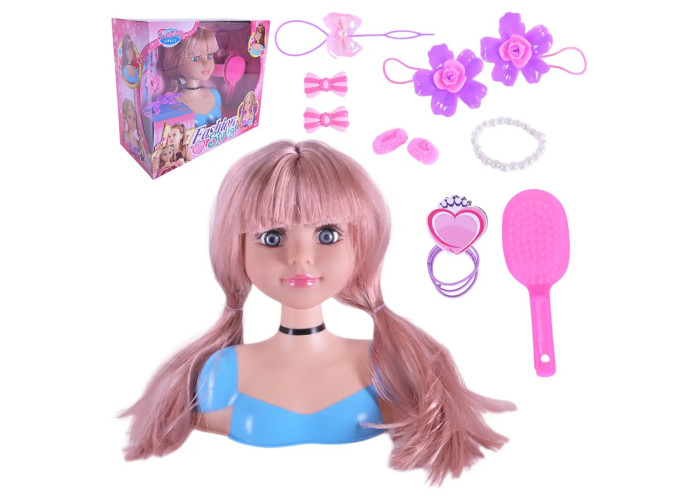 Лялька-манекен із набором для створення зачісок уже стала хітом у списку улюблених іграшок дівчаток по всьому світу! Голова для зачісок, являє собою ляльковий манекен зі світлим довгим волоссям, розрахованим на створення великої кількості різноманітних зачісок. Волосся виконане з якісних матеріалів, добре тримає форму і не збивається. Обличчя ляльки ретельно та детально промальовано. На такому оригінальному тренажері дівчинка може практикуватися розчісувати волосся, плести кіски та робити різні зачіски. Для цього в комплекті є гребінець та різноманітні аксесуари.