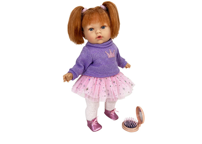 Ця лялечка – втілення мрії кожної маленької дівчинки. У неї дуже миле обличчя з великими виразними очима та довгими віями. Блискуче волосся прошите по всій голові, тому дитина зможе легко розчісувати свою маленьку подружку і робити їй красиві зачіски. Голова, ручки та ніжки виготовлені з приємного на дотик вінілу, а м'який животик - із щільного текстилю. Виробник подбав не тільки про деталі натурального зовнішнього вигляду, а також про унікальний, красивий і модний одяг. Яку, за потреби, можна легко випрати.