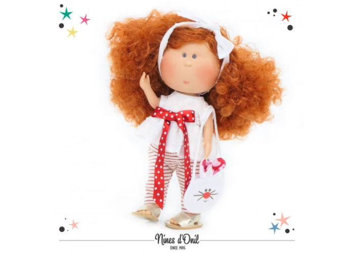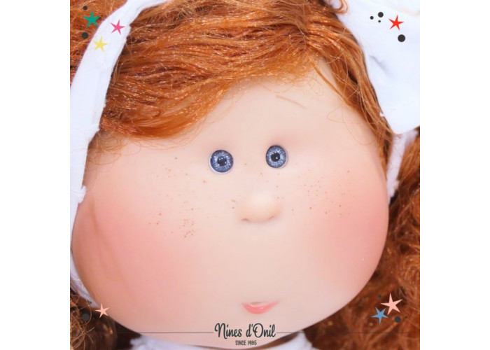 Новинкою від фабрики Nines d'Onil є оригінальна лялечка Мія з зворушливим виразом обличчя. Мія виготовлена з нешкідливих матеріалів — оксамитового, приємного на дотик, вінілу та силікону, з легким ароматом ванілі. Лялька може самостійно стояти, всі її частини тіла рухливі, очі не заплющуються, без звукових ефектів. Довге густе волосся прошите по всій голові. Завдяки цьому, лялечку можна легко розчісувати та міняти зачіски.