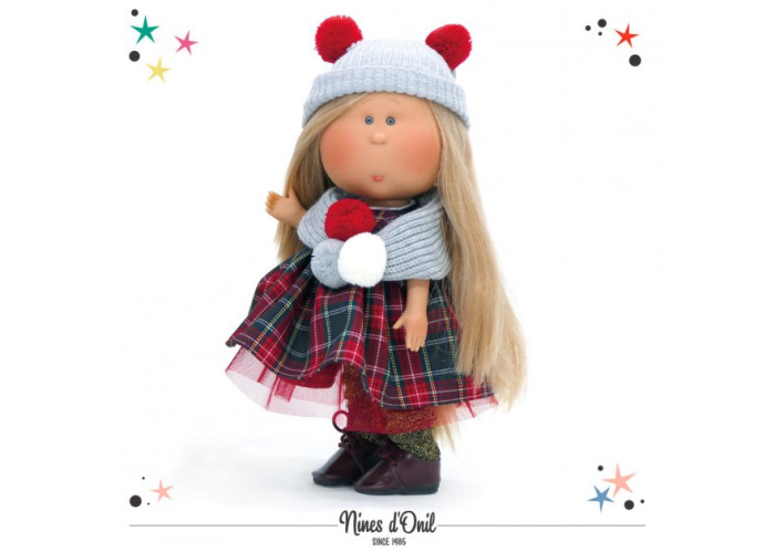 Новинкою від фабрики Nines d'Onil є оригінальна лялечка Мія з зворушливим виразом обличчя. Мія виготовлена з нешкідливих матеріалів — оксамитового, приємного на дотик, вінілу та силікону, з легким ароматом ванілі. Лялька може самостійно стояти, всі її частини тіла рухливі, очі не заплющуються, без звукових ефектів. Довге густе волосся прошите по всій голові. Завдяки цьому, лялечку можна легко розчісувати та міняти зачіски.