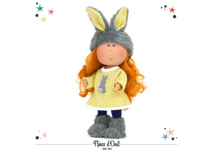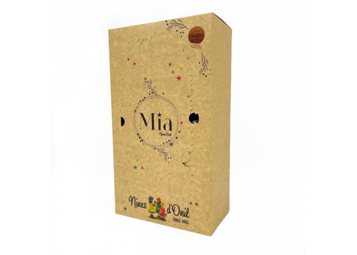 Новинкою від фабрики Nines d'Onil є оригінальна лялечка Мія з зворушливим виразом обличчя. Мія виготовлена з нешкідливих матеріалів — оксамитового, приємного на дотик, вінілу та силікону, з легким ароматом ванілі. Лялька може самостійно стояти, всі її частини тіла рухливі, очі не заплющуються, без звукових ефектів. Довге густе волосся прошите по всій голові. Завдяки цьому, лялечку можна легко розчісувати та міняти зачіски.