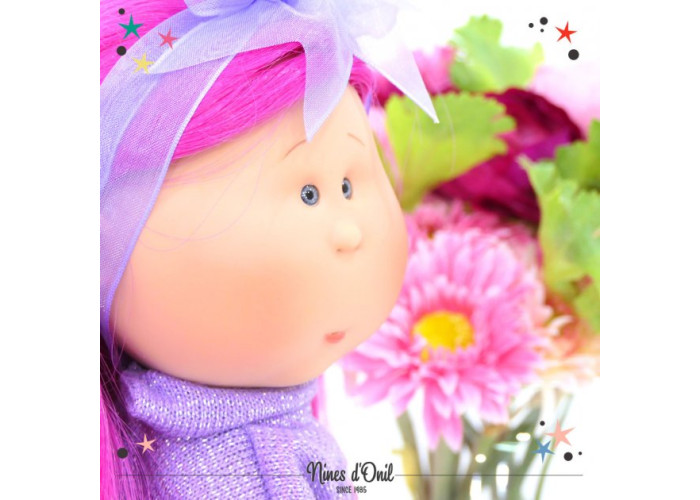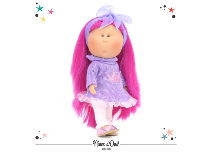 Новинкою від фабрики Nines d'Onil є оригінальна лялечка Мія з зворушливим виразом обличчя. Мія виготовлена з нешкідливих матеріалів — оксамитового, приємного на дотик, вінілу та силікону, з легким ароматом ванілі. Лялька може самостійно стояти, всі її частини тіла рухливі, очі не заплющуються, без звукових ефектів. Довге густе волосся прошите по всій голові. Завдяки цьому, лялечку можна легко розчісувати та міняти зачіски.
