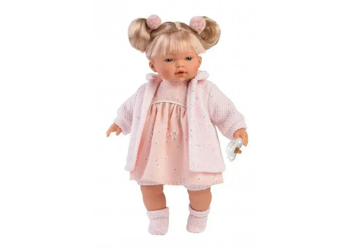 Лялька відомого іспанського бренду Llorens - це відмінна якість, безпечні гіпоалергенні матеріали, висока реалістичність і гарний одяг! Лялька Айтана - красива дівчинка з двома пишними хвостиками. Вона вміє кликати маму і тата і плакати, якщо забрати у неї соску. Тіло м'яке текстильне. Ручки, ніжки і голова зроблені з вінілу. Одягнена малятко в красиву сукню в квіточку, кофту і шкарпетки. Упакована в красиву подарункову упаковку.