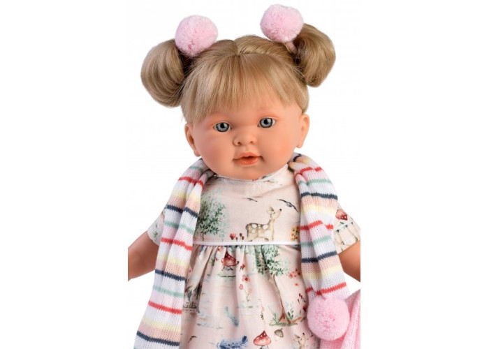 Інтерактивна лялька Alexandra, що плаче - втілення мрії кожної маленької дівчинки. Детальна промальовка пальчиків, красиві очі, рум'яні щічки та ніжна усмішка надають лялечці незвичайну реалістичність. Блискуче волосся прошите по всьому периметру голови, тому дитина зможе легко розчісувати свою маленьку подружку і робити їй красиві зачіски, Голова, ручки та ніжки виготовлені з приємного на дотик вінілу, а м'який животик - із щільного текстилю тілесного кольору. У комплекті з лялечкою є функціональна пустушка з утримувачем, при вийманні якої вона плаче і каже "мама", "тато". Також, велику увагу, виробник приділив одязі, зробивши його із сертифікованого текстилю. При необхідності наряд можна легко прати.