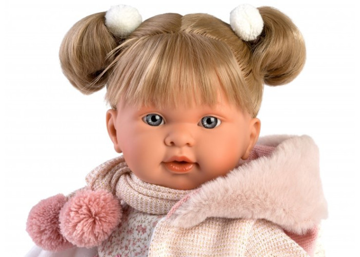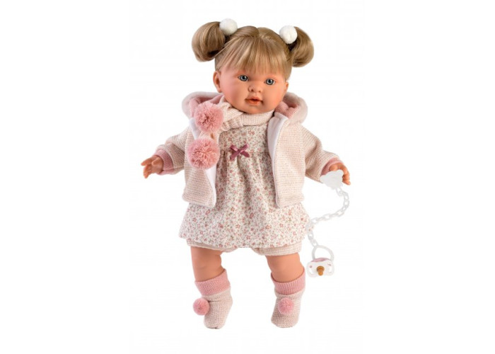 Інтерактивна лялька Alexandra, що плаче - втілення мрії кожної маленької дівчинки. Детальна промальовка пальчиків, красиві очі, рум'яні щічки та ніжна усмішка надають лялечці незвичайну реалістичність. Блискуче волосся прошите по всьому периметру голови, тому дитина зможе легко розчісувати свою маленьку подружку і робити їй красиві зачіски, Голова, ручки та ніжки виготовлені з приємного на дотик вінілу, а м'який животик - із щільного текстилю тілесного кольору. У комплекті з лялечкою є функціональна пустушка з утримувачем, при вийманні якої вона плаче і каже "мама", "тато". Також, велику увагу, виробник приділив одязі, зробивши його із сертифікованого текстилю. При необхідності наряд можна легко прати.