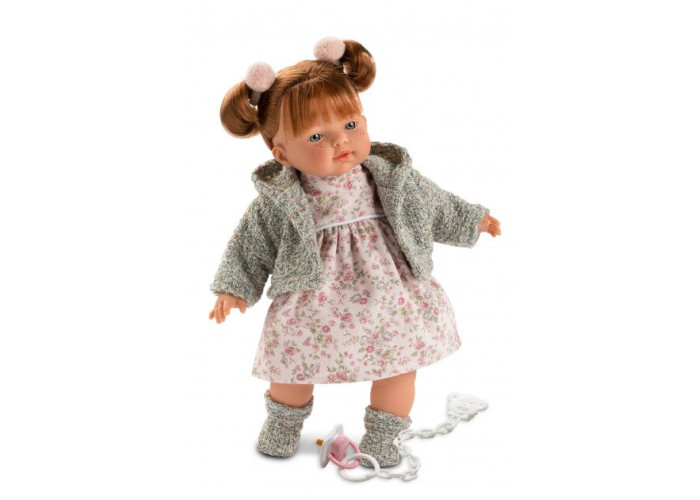 Чарівна рудоволоса дівчинка з милими ластовинням від LLORENS стане кращою подружкой. Тело ляльки м’яконабивне, личко, ручки і ніжки виготовлені з ніжного нетоксичного вініліа. Якісно прошите волосся, зібране в пухнастий хвостик. Лялька Аліса одягнена в сукню до колін, теплу трикотажну кофточку. Лялька музична - витягуючи соску - спрацьовує механізм, лялька плаче кличе маму і тата протягом 15-20 секунд, потім заспокоюється. Для того щоб привести механізм в дію потрібно вставити і витягнути соску. Упакована в подарункову коробку.