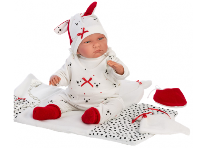 Пупс Lalo має оригінальний дизайн, форми обличчя і тіла мають реалістичний вигляд. Lalo одягнена в комбінезон і носочки, на голові шапочка з вушками. Також є конверт і пустушка. Лялька інтерактивна. Якщо натиснути ляльці на животик, лялька буде плакати, казати мама і тато.