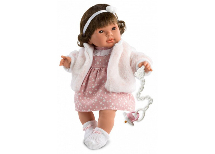 Лялька Pippa розміром 42 см і виконана з ніжного, приємного вінілу. У неї м'який живіт, заповнений підкладкою. У ляльки є соска, при вийманні якої вона плаче і каже «мама, тато». У Піппи карі очі і напівдовге закручені коричневе волосся з чубчиком. На волоссі білий обруч з маленькими помпонами. Одягнена в рожеву сукню з білими зірками з симпатичною воланом під шиєю. У комплект також входять м'яка курточка з плюшу та шкарпетки. Лялька упакована в елегантну картонну коробку, яка ідеально підходить для подарунка.