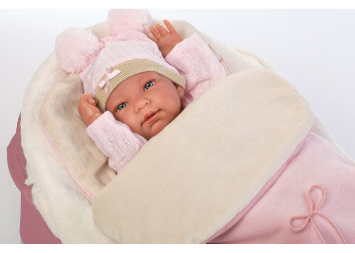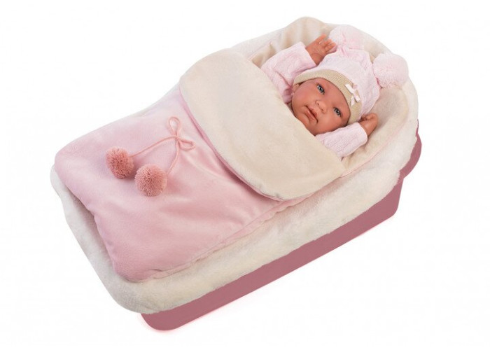 Лялька Тіна 43 см була виготовлена в Іспанії фірмою Llorens. Це відмінна іграшка для дітей будь-якого віку. Завдяки своїй реальній зовнішності, лялька вчить дітей відповідальності та співчуття. Все тіло Тіни було зроблено з приємного вінілу, тому ляльку можна купати, занурюючи її до рівня шиї. Тіна вибрала рожевий стиль з м'яких тканин, щоб забезпечити дитині максимальний комфорт. У комплект входить рожевий і бежевий ляльковий спальний мішок, в якому вона любить спати. Лялька упакована в декоративну картонну коробку. Прикріплена соска має декоративну функцію.
