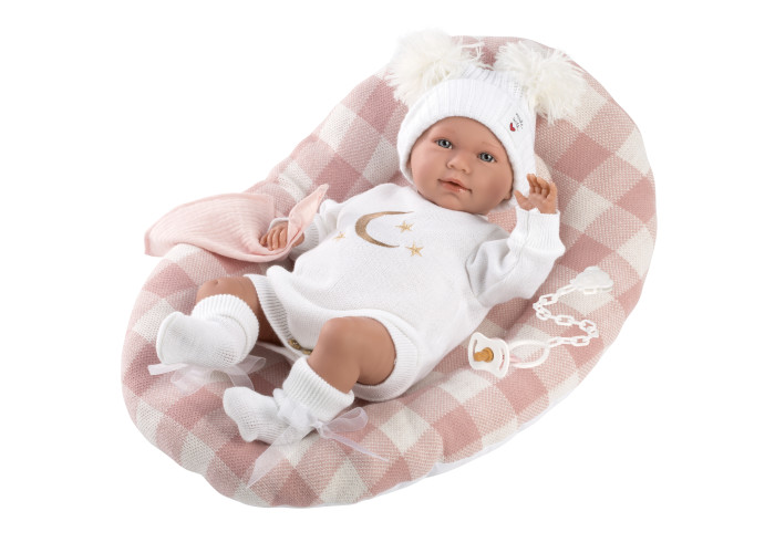 Оригінальний пупс Mimі 40 см, відомого іспанського бренду Llorens. Цей пупс - втілення мрії кожної маленької дівчинки. У нього миле обличчя з сірими очима і довгими віями. Детальне промальовування пальчиків, очей і волосся, приголомшлива міміка надає пупсу незвичайної реалістичності. Mimі має м'яке текстильне тіло. Голова, ручки і ніжки виготовлені з якісного, приємного на дотик вінілу. При натисканні на животик Mimі плаче і вимовляє «мама», «тато». Виробник подбав не тільки про деталі натурального зовнішнього вигляду, а також про унікальний, красивий і модний одяг.