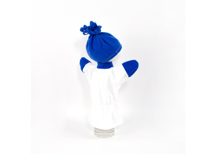 - іграшка-театр сніговик виготовлена з безпечних матеріалів білого і синього кольору