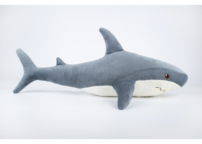 - м'яка іграшка акула пошита з ніжного мікроплюша, а всередині - пухнастий гіпоалергенний холлофайбер, що сприятливо позначається на відчуттях малюка при торканні