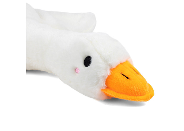 - м'який іграшковий гусак-обіймак, пошитий з ніжного штучного хутра, а всередині - пухнастий гіпоалергенний холлофайбер, що сприятливо позначається на відчуттях малюка при взаємодії;