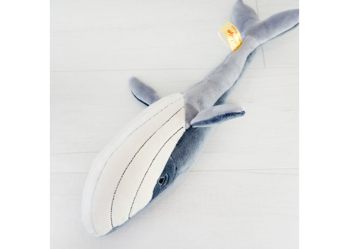 - м'який іграшковий кит пошитий з ніжного мікроплюша, а всередині - пухнастий гіпоалергенний холлофайбер, що сприятливо позначається на відчуттях малюка при торканні