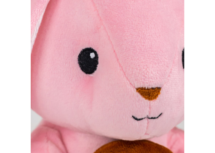 - м'яка іграшка зайчик Хрумтик пошита із рожевого та коричневого мікроплюша, а всередині - пухнастий гіпоалергенний холлофайбер, що сприятливо впливає на відчуття при торканні