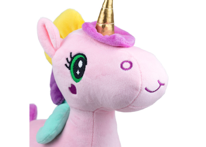 Іграшка створена з м’якого плюшу високої якості, приємного на дотик і безпечного для дітей. Наповнювач із холофайберу робить єдиноріжку об’ємною та пружною, забезпечуючи їй довговічність навіть після численних обіймів. Завдяки великому розміру — 32 см — вона стане ідеальним другом для сну, ігор чи прикрашання дитячої кімнати.