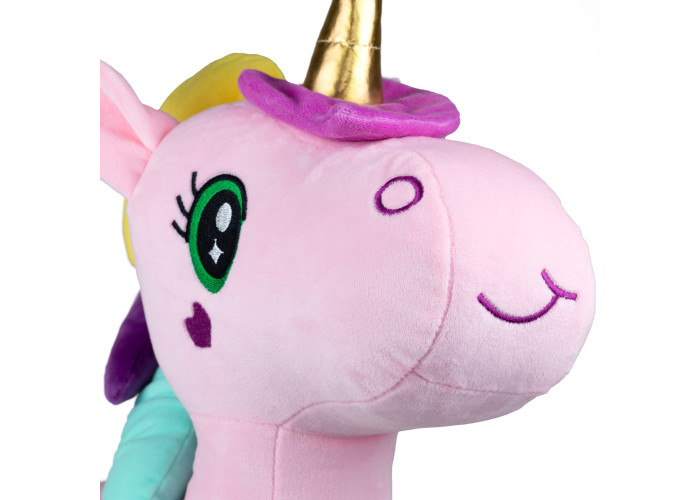 Іграшка створена з м’якого плюшу високої якості, приємного на дотик і безпечного для дітей. Наповнювач із холофайберу робить єдиноріжку об’ємною та пружною, забезпечуючи їй довговічність навіть після численних обіймів. Завдяки великому розміру — 52 см — вона стане ідеальним другом для сну, ігор чи прикрашання дитячої кімнати.