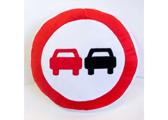 Плюшева подушечка є частиною серії декоративних подушок ЗНАКІВ для авто, в яку входить знак "Туфелька", "Обгін заборонено" і "Учень".