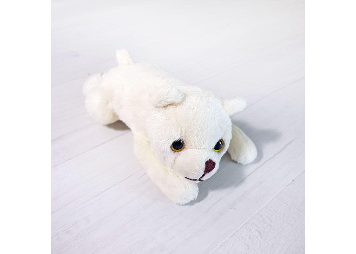 - зовні ведмежа пошитий з ніжного білого плюшу, а всередині - пухнастий гіпоалергенний холлофайбер, що сприятливо позначається на відчуттях малюка при торканні