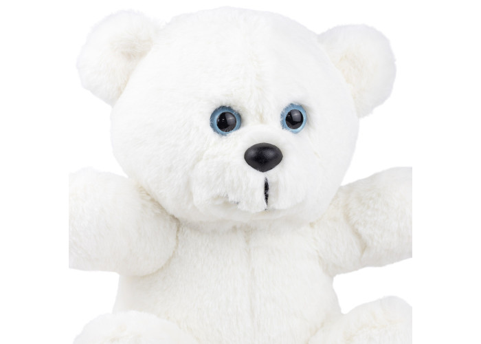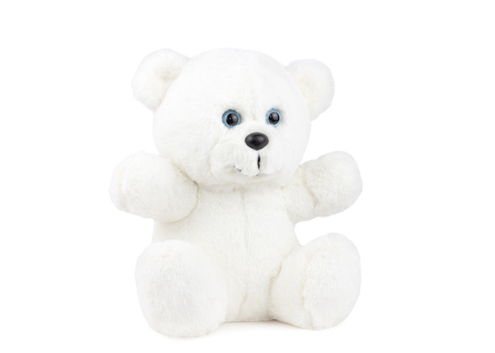 - м'який ведмедик пошитий з штучного хутра білого кольору, а всередині - пухнастий гіпоалергенний холлофайбер, що сприятливо позначається на відчуттях малюка при торканні