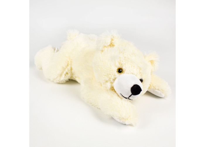 - м'який ведмедик пошитий з штучного хутра молочного кольору, а всередині - пухнастий гіпоалергенний холлофайбер, що сприятливо позначається на відчуттях малюка при торканні