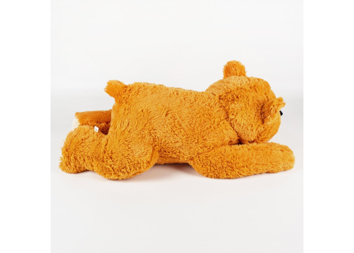 - м'який ведмедик пошитий з штучного хутра коричневого кольору, а всередині - пухнастий гіпоалергенний холлофайбер, що сприятливо позначається на відчуттях малюка при торканні