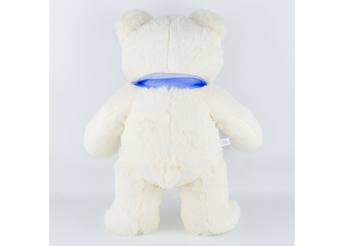 - м'який ведмедик пошитий з штучного хутра молочного кольору, а всередині - пухнастий гіпоалергенний холлофайбер, що сприятливо позначається на відчуттях малюка при торканні