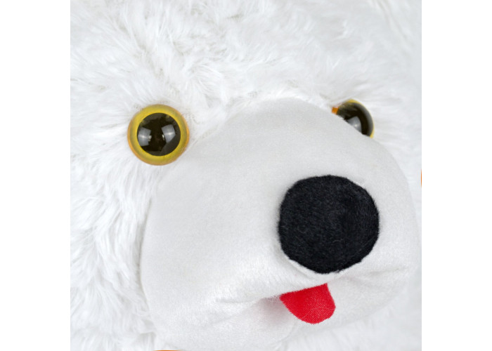 - м'який ведмедик пошитий з штучного хутра білого кольору, а всередині - пухнастий гіпоалергенний холлофайбер, що сприятливо позначається на відчуттях малюка при торканні