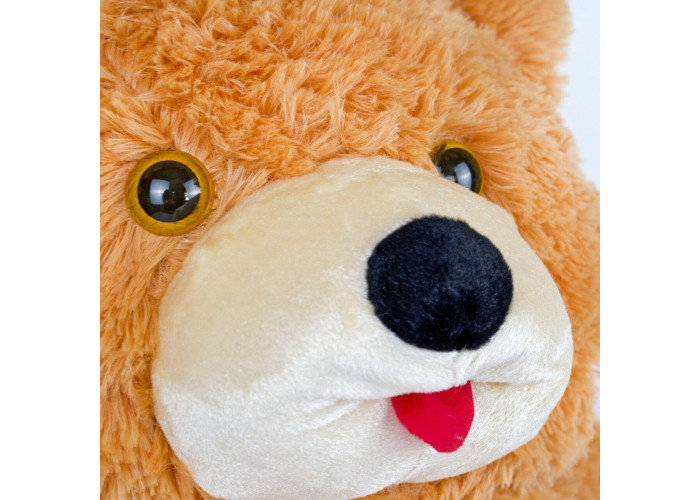 - м'який ведмедик пошитий з штучного хутра коричневого кольору, а всередині - пухнастий гіпоалергенний холлофайбер, що сприятливо позначається на відчуттях малюка при торканні