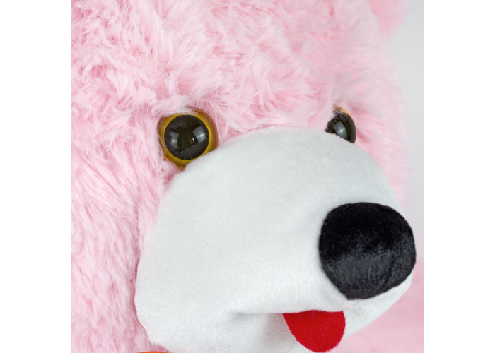 - м'який ведмедик пошитий з штучного хутра рожевого кольору, а всередині - пухнастий гіпоалергенний холлофайбер, що сприятливо позначається на відчуттях малюка при торканні