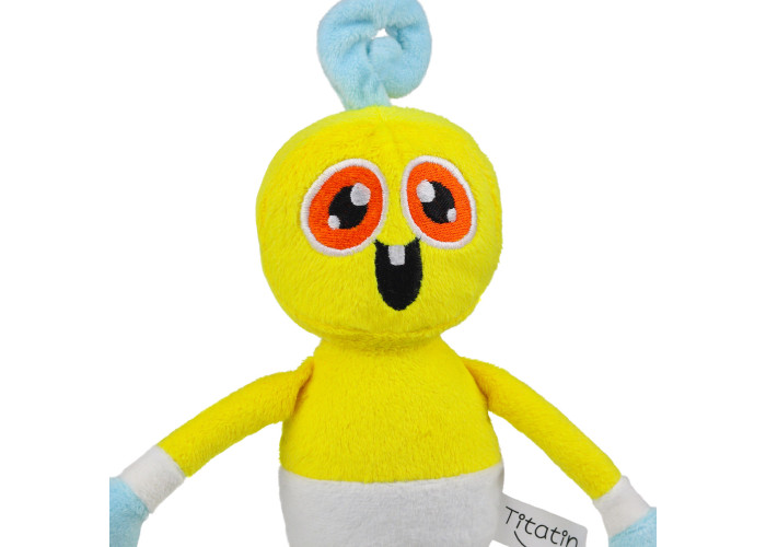 - м'яка іграшка пошита із приємного мікроплюшу жовтого блакитного та білого кольорів